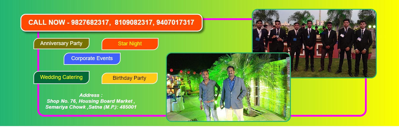 "D. Srivastava Caterer" is one of the best caterer of eastern MP which provide services all over MP. We at give importance to Hygienic, Delicious and Nutritious food. From a small function to a huge ceremony we already caterer a large number of event till date. We have a extensive and proud list of organizing and catering many elite event of prominent persons. We have a huge base of fully satisfactory customer.
